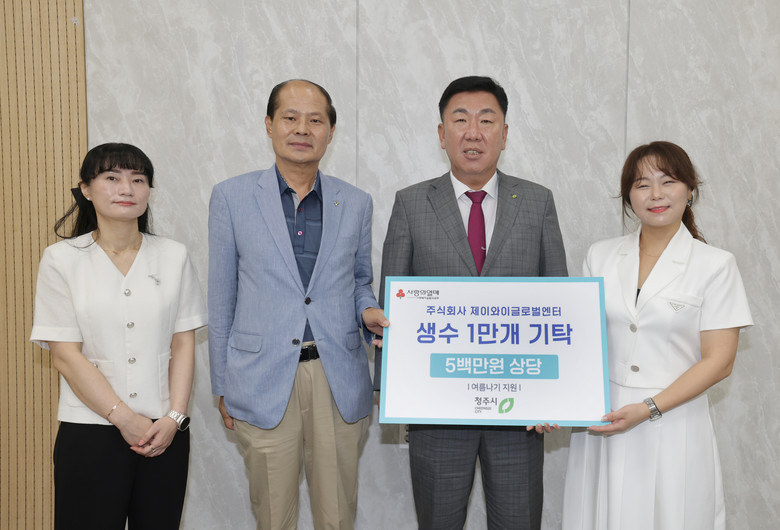 ㈜제이와이글로벌엔터는 2024년에 생수(500ml) 5천병을 기탁한 데 이어, 올해에도 취약계층과 사회복지시설을 지원하기 위해 청주시를 찾았다.
