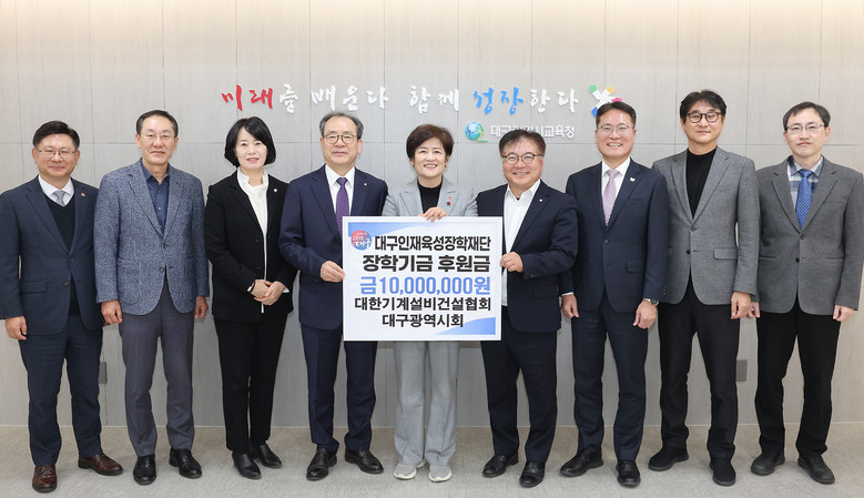 [대구 세계타임즈=한윤석 기자] 대구시교육청은 12월 4일(목), 대한기계설비건설협회 대구광역시회(회장 이민균)에서 대구인재육성장학재단에 장학금 1천만 원을 기탁했다고 밝혔다.