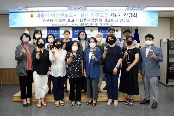 [세종=세계타임즈 이채봉 기자] 세종특별자치시의회(의장 이태환) ‘세종시 여성친화도시 실천 연구모임(대표의원 이영세)’은 10일 의회청사 대회의실에서 연구용역 최종 보고와 세종돌봄공동체 네트워크와 간담회를 진행했다.