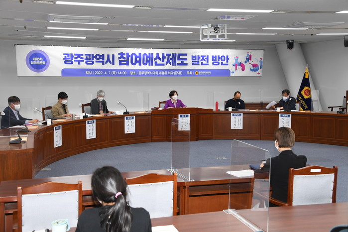 이번 토론회는 박미정 광주광역시의원이 좌장을 맡고, 김상철 나라살림연구소 수석연구위원, 기우식 참여자치21 사무처장이 발제를, 시민사회 대표와 행정관계자가 토론자로 참여하였다.