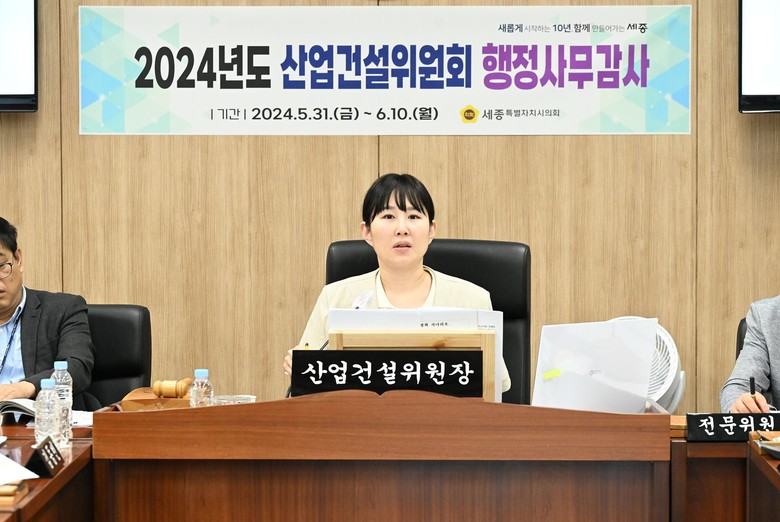 [세종 세계타임즈=이채봉 기자] 세종특별자치시의회(의장 이순열) 산업건설위원회(위원장 이현정)는 6월 3일부터 5일까지 3일에 걸쳐 미래전략본부, 경제산업국 등에 대한 행정사무감사를 실시했다. 연일 이어지는 감사에서 날카로운 질의를 이어가며 경제, 산업분야 등 전반적인 행정의 실효성을 점검하고 개선을 촉구했다.