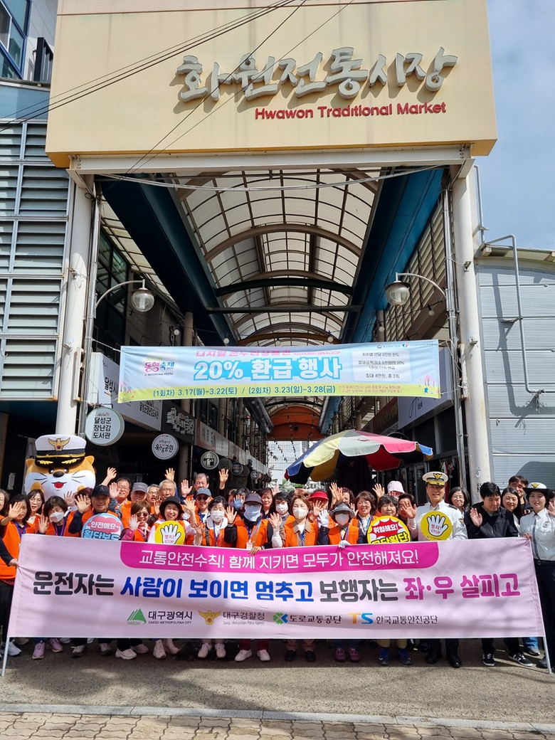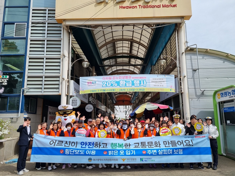 ▸ 교통약자들의 교통사각지대 최소화 목표, 찾아가는 교통안전교육 실시 [세계타임즈=대구 한윤석 기자] 대구자치경찰위원회(위원장 이중구)는 4월 23일(수) 화원전통시장에서 대구시 교통국, 달성경찰서, 도로교통공단, TBN대구교통방송, 달성시니어클럽과 함께 고령자 교통안전 캠페인 및 체험형 안전교육을 실시했다.