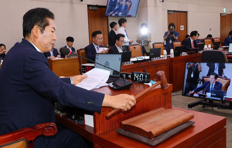 정청래 위원장이 27일 국회에서 열린 법제사법위원회 전체회의에서 의사봉을 두드리고 있다. 2024.8.27