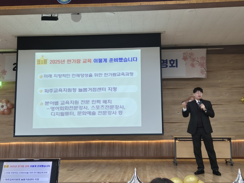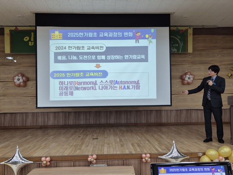 지난 3월, 한가람초등학교에서 열린 입학식과 학부모총회에서 이강수 교장선생님이 새로운 교육과정에 대한 설명회를 진행했다. 이번 설명회는 학부모들에게 교육과정의 변화와 그에 따른 학생들의 학습 방향을 알리기 위해 마련되었다.