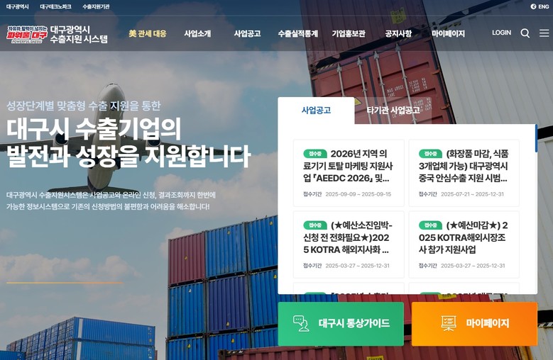 대구시는 2014년부터 ‘대구수출지원시스템’을 구축·운영하며, 지역 기업들이 해외 마케팅 지원사업 신청과 수출 통계 조회를 편리하게 이용할 수 있도록 지원해 왔다.