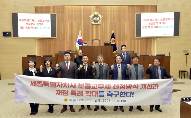 세종시의회는 이번 결의문을 통해 ▲단층제 특수성을 인정한 보통교부세 산정방식 시행규칙 즉각 개정 및 기초 행정수요 항목 전면 반영 ▲세종시법 개정을 통한 ‘정률제’ 도입 또는 별도 재정 특례 조항 신설 ▲일몰 예정인 재정 특례 연장 및 항구적 재정 안정화 대책 수립 등을 정부와 국회에 강력히 촉구했다.