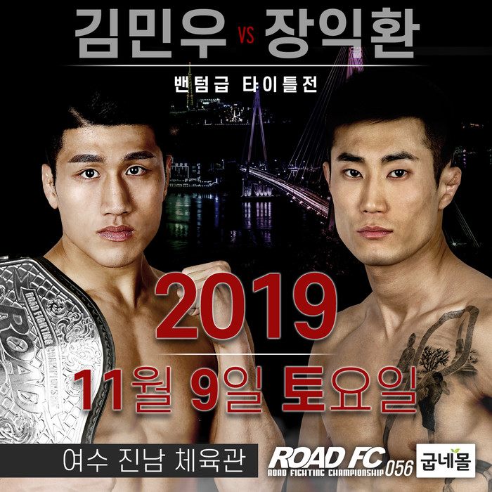 [세계타임즈 김인수기자] 김민우는 11월 9일 여수 진남체육관에서 개최되는 굽네몰 ROAD FC 056에서 장익환(32, 팀파시)과 1차 방어전을 치른다. ROAD FC 밴텀급 타이틀이 걸린 경기로 김민우가 승리하면 1차 방어 성공, 장익환이 승리하면 새로운 밴텀급 챔피언으로 등극한다.