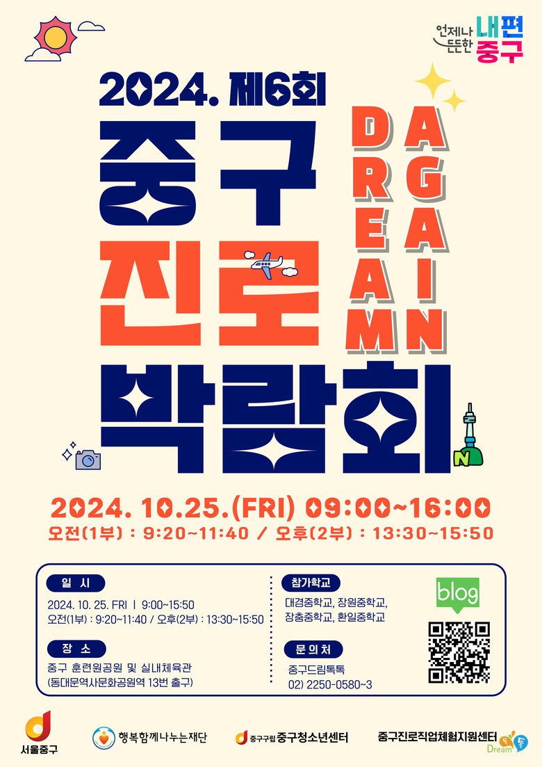 중구진로직업체험지원센터가 주관하는 이번 박람회는 코로나19 이후 5년 만에 개최하며 4가지 주제 31개의 다양한 부스를 마련해서 중학생들의 내 꿈 찾기를 지원한다. 학생 1인당 3개 부스를 체험할 수 있도록 100% 사전 예약으로 진행해 상담과 체험이 내실있게 진행되도록 했다.