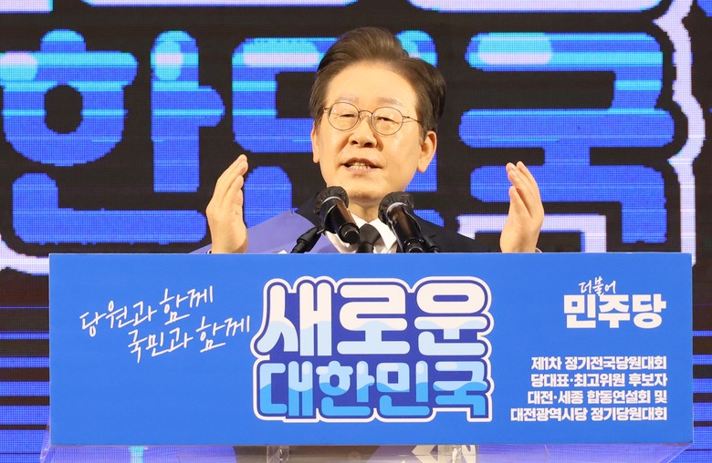 이 후보는 이날 서울 중구 장충체육관에서 열린 경선에서 권리당원 온라인 투표 결과 92.43%의 득표율을 기록했다. 김두관 후보는 6.27%, 김지수 후보는 1.30%를 각각 득표했다.