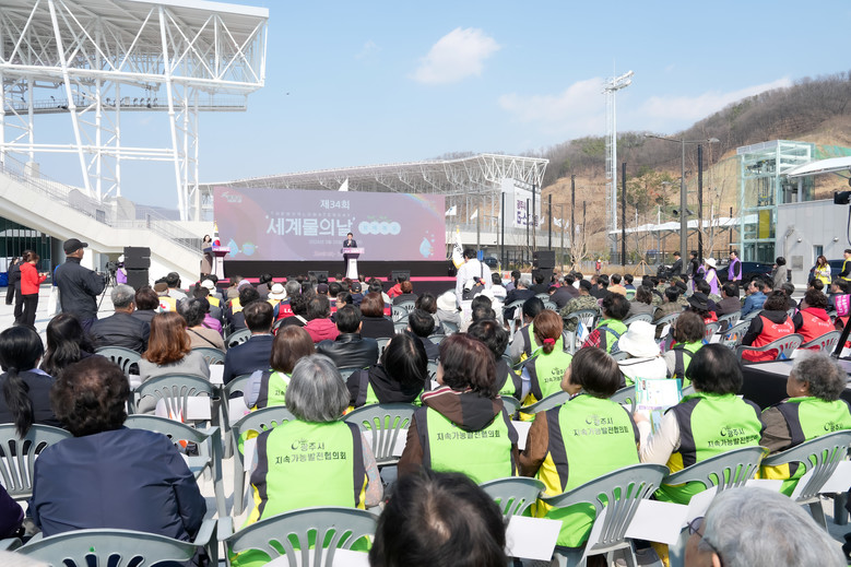 [광주시 세계타임즈=송민수 기자] 광주시는 20일 세계 물의 날을 맞아 광주시 G-스타디움 앞 광장에서 ‘제34회 세계 물의 날 기념식 및 G-스타디움 녹색 걷기 행사’를 개최했다.