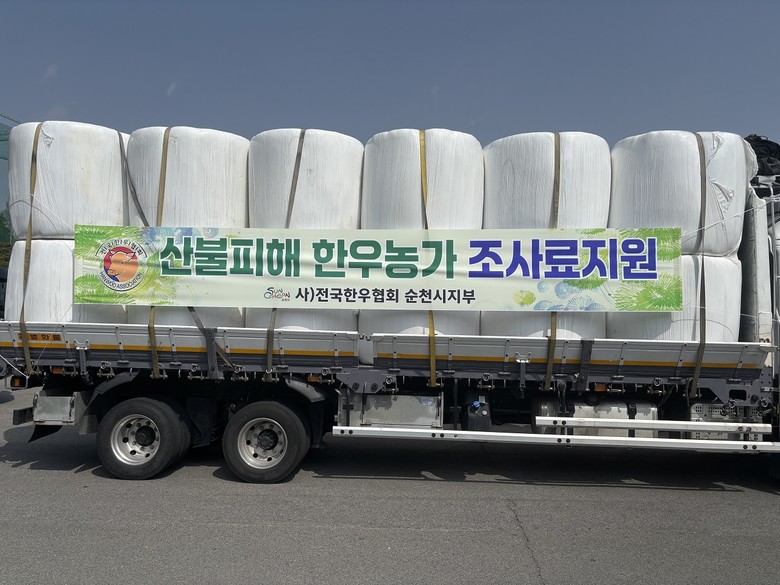이에 전국한우협회 순천시지부는 피해 복구와 조속한 농가 정상화를 지원하고자 회원들의 자발적인 참여로 조사료를 모아 전달했다.