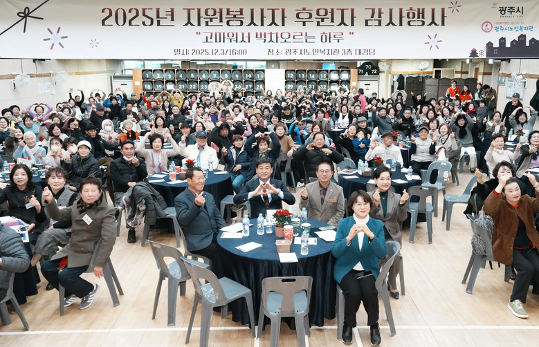 이 자리에서 방세환 시장은 “올 한 해 다양한 자리에서 어르신들을 위해 헌신해 주신 자원봉사자와 후원자 여러분께 깊이 감사드린다”며 “광주시는 앞으로도 봉사자와 후원자 여러분이 보람을 느끼며 활동하실 수 있도록 최선을 다해 지원하겠다”고 말했다.