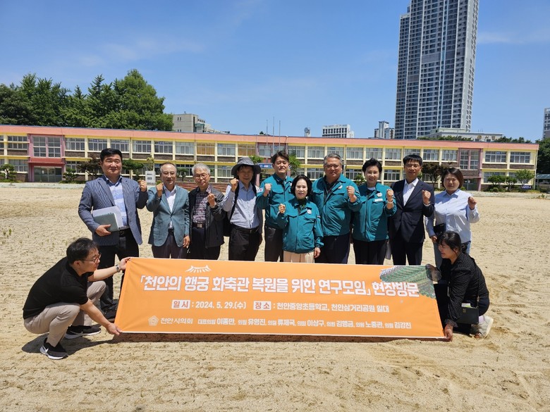 현장 방문지 중 ▲천안중앙초등학교는 화축관의 옛 터로 추정되어 2021년, 2022년 시굴조사를 실시했던 곳으로, 유영진 의원은 중앙동 재개발 사업 계획에 의한 유물 유실의 가능성에 안타까움을 표했고, 김행금 의원은 화축관 재현에 모두가 힘을 쏟아야 한다고 말했다.