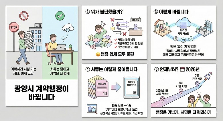 광양시 관계자는 “전자계약 도입은 행정 내부의 효율을 높이는 동시에 시민과 업체가 바로 체감할 수 있는 변화”라며 “이번 전환을 계기로 계약 행정의 일하는 방식을 근본적으로 개선하고, 누구나 쉽고 편리하게 이용할 수 있는 디지털 계약행정을 완성해 나가겠다”고 말했다.
