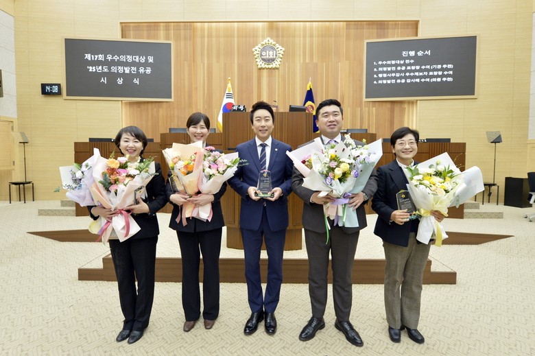 수상자는 임채성 의장을 비롯해 이순열, 이현정, 최원석, 홍나영 의원 등 총 5명으로 이들은 적극적인 입법 활동과 정책 대안 제시, 현장 중심 의정활동을 통해 시민의 삶의 질 향상과 지역사회 발전에 기여한 공로를 인정받았다.