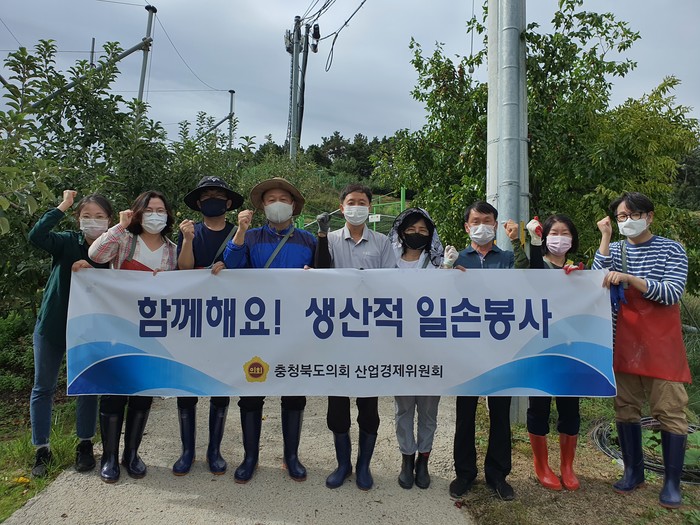 [충북=세계타임즈 이현진 기자] 충북도의회 산업경제위원회(위원장 연종석)는 28일 인력난에 어려움을 겪고 있는 증평군 소재 사과 농장을 찾아 일손을 보탰다.