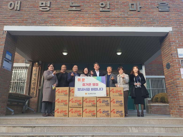 9일(월)에는 경상북도의회를 대표해 김대진 도의원이 안동시 북후면에 위치한 「애명노인마을」을 찾아 도의회에서 준비한 위문품을 전달하고 관계자들을 격려했다.