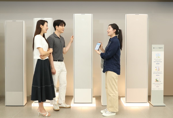 | ▲삼성스토어 서초에서 매니저가 소비자들에게 '비스포크 AI 무풍 갤러리'를 안내하고 있다. (사진=삼성전자) |