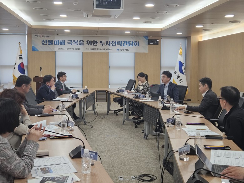 도는 4월30일 안민관에서 ‘산불피해 극복을 위한 투자전략 간담회’(이하 투자간담회)를 개최했다. 이날 투자간담회에는 도 공항투자본부장, 민자활성화과장, 산불피해 5개 시·군(안동, 의성, 청송, 영양, 영덕) 민간투자분야 담당 과장 등이 참석했다.