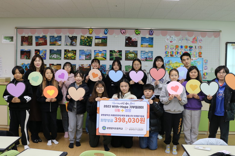 [광명시 세계타임즈=심하린 기자] 광명 소재 광명광덕초등학교(교장 전성화)는 22일(수) 광명희망나기운동본부에 기부금을 전달하여 어려움을 겪고 있는 광명의 이웃들과 정을 함께 나누었으면 한다고 밝혔다.