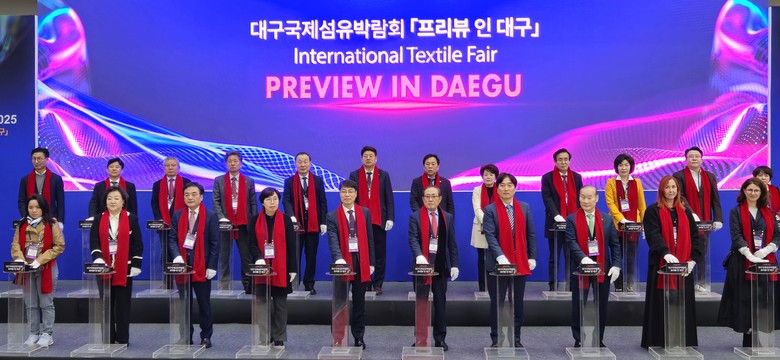 대구국제섬유박람회는 경상북도와 대구광역시가 공동으로 개최하는 아태지역 대표 섬유박람회로 5일 개막식에는 김정기 대구광역시 행정부시장을 비롯해 최혁준 경상북도 메타AI과학국장, 김종주 산업통상자원부 섬유탄소나노과장, 섬유 관련 단체장과 기업인 등 80여 명이 참석했다.