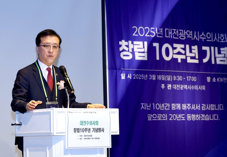 [대전 세계타임즈=이채봉 기자] 대전시의회 조원휘 의장은 16일 둔산동 KW컨벤션센터에서 개최된 대전광역시 수의사회 10주년 기념식에 참석해 동물보호와 복지, 시민보건 증진을 위해 헌신해 오신 수의사회 활동에 깊은 감사를 표했다.
