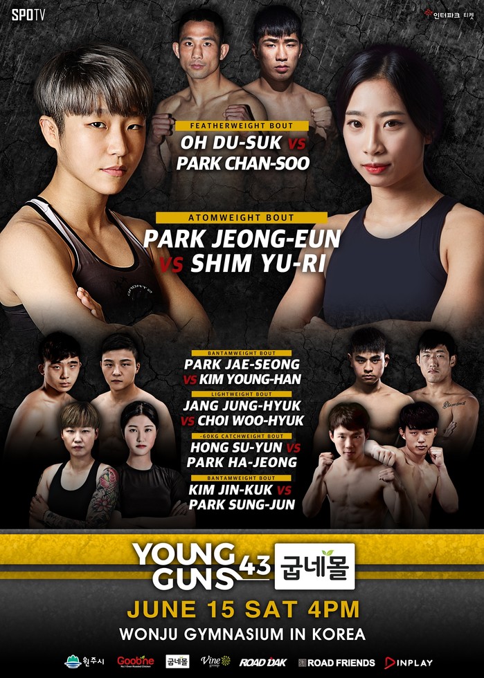 [세계타임즈 김인수기자] ROAD FC (로드FC)는 다음달 15일 원주 종합체육관에서 굽네몰 ROAD FC YOUNG GUNS 43을 개최한다.