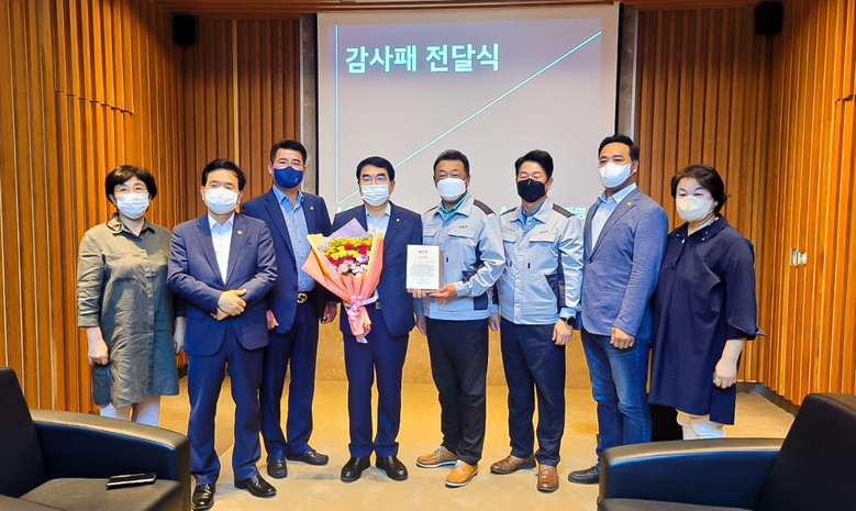 감사패에는 “물류대란의 위기 속에서 신속한 행정지원 등 적극적인 업무협조를 받아 원활하게 생산라인을 가동할 수 있었다”며 “깊은 감사의 마음을 담아 이 패를 드린다”는 내용이 담겼다.