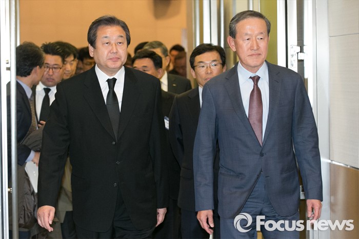 (서울=포커스뉴스) 25일 오후 서울 여의도 전경련회관에서 열린 새누리당-전경련 정책간담회에 김무성(왼쪽) 새누리당 대표와 허창수(오른쪽) 전경련 회장이 참석하고 있다.
