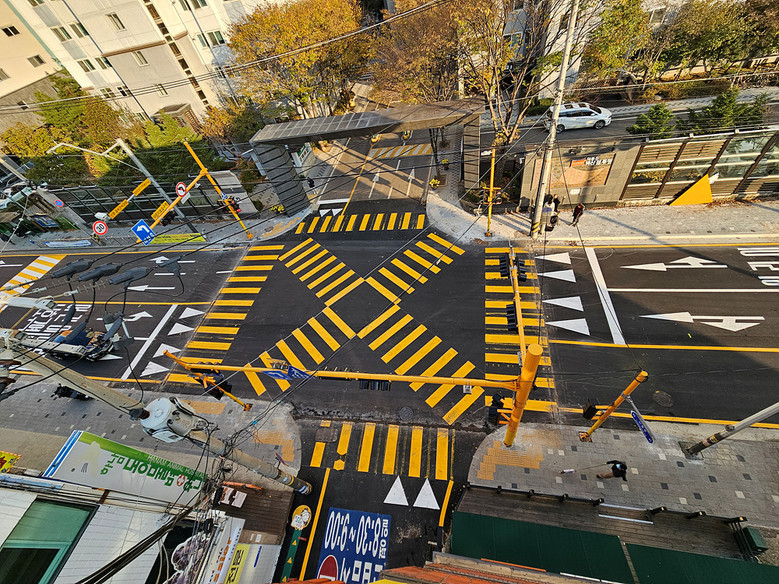 시는 기반 시설이 부족한 원도심 어린이 보호구역의 보행환경과 교통운영 체계를 개선하기 위해 ▲기존 신호 운영 교차로를 소형 회전교차로 개선 ▲대각선 횡단보도 ▲고원식 횡단보도 ▲어린이보호구역 전용 과속방지턱 ▲바닥신호등 ▲보행자 펜스(fence) ▲보·차도 정비를 완료했다.
