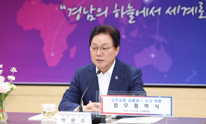 - 섬에어㈜, 내년 상반기 사천~김포·제주 신규취항... 단계적 노선 확대 [세계타임즈=경남 최성룡 기자] 경상남도(도지사 박완수)는 18일 도청 도정회의실에서 소형항공사 섬에어㈜와 업무협약을 체결하고, 사천공항 활성화와 도민의 항공교통 편의 증진을 위한 본격적인 협력에 나섰다.