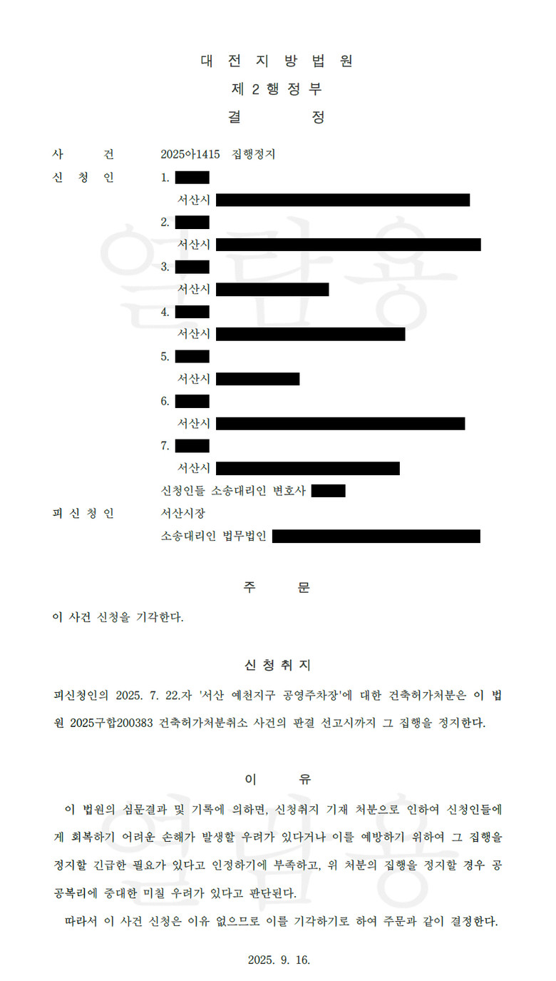 지난 16일 대전지방법원은 해당 사업에 대한 집행정지 신청을 기각하며, 사업 추진에 문제가 없음을 분명히 했다.