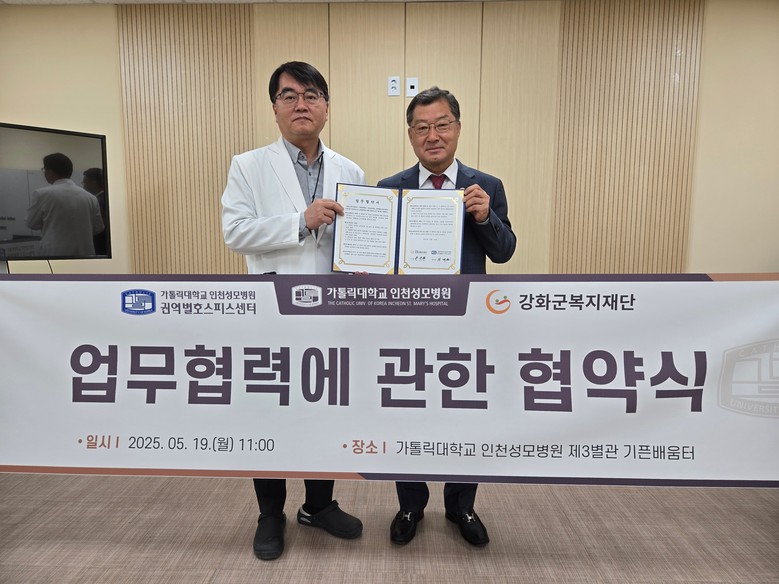 [강화군 세계타임즈=심하린 기자] 강화군복지재단(이사장 한석현)이 지난 19일, 가톨릭대학교 인천성모병원 권역별호스피스센터(센터장 김대균)와 업무협약을 체결했다.