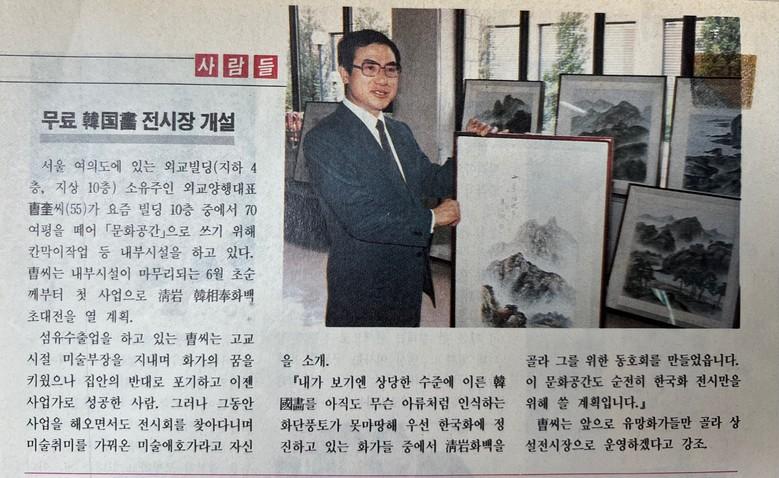 1989년도에 조선일보사에서 발행한 <주간조선>이라는 잡지에 ‘무료 한국화 전시장 개설’이라는 제목과 함께 다음과 같은 기사가 실려 있다.
