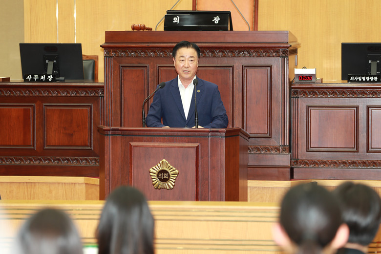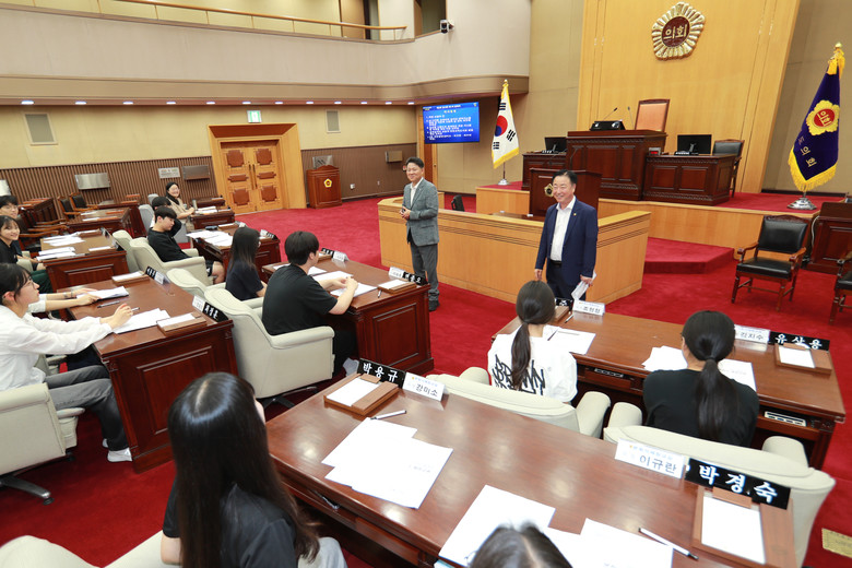 학생들은 또 ‘재활용품 스마트 무인수거기 설치’ 등 지역 현안에 대해 제언하는 2분 자유발언 시간을 가져보는 등 지방의원의 역할을 직접 수행해 보는 시간을 가졌다.