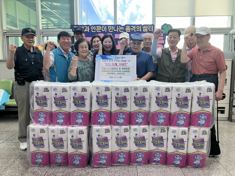 [남동구 세계타임즈=심하린 기자] 인천시 남동구 논현고잔동 행정복지센터는 인천고잔고등학교(교장 권순범)와 학부모회, 인근 카페들이 함께 추진한 ‘종이팩 수거 활동’을 통해 교환한 물품을 지역 경로당에 기부해 주민들에게 감동을 전했다고 12일 밝혔다.