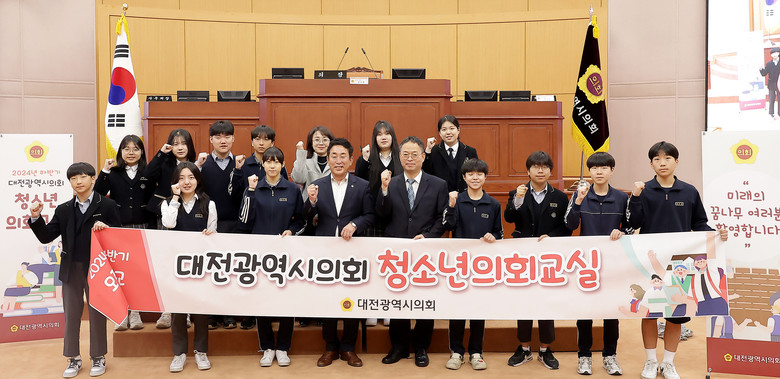 [대전 세계타임즈=이채봉 기자] 대전시의회(의장 조원휘)는 22일(금) 오정중학교 학생들이 참여한 가운데 2024년도 하반기 세 번째 청소년의회교실을 개최했다.