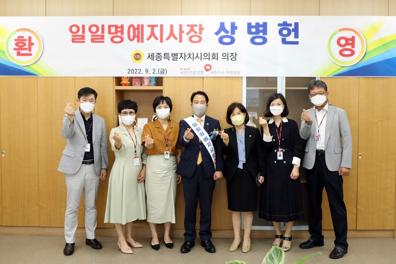 이날 상병헌 의장은 국민건강보험공단 세종지사장실에서 송미정 지사장으로부터 명예지사장 위촉장을 받은 후 지사 업무 현황을 보고 받고 민원을 처리하는 시간을 가졌다.