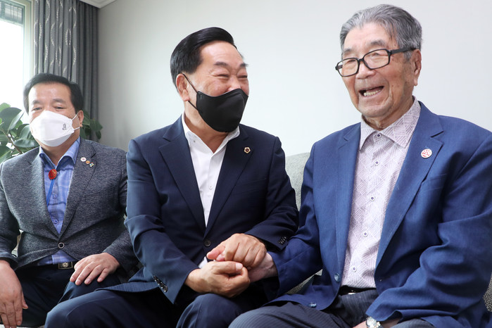 [충북=세계타임즈 이현진 기자] 박문희 충북도의장은 10일 제76주년 광복절을 맞아 진천에 거주하는 우리도 생존 애국지사(오상근, 98세)를 방문해 위문품을 전달했다.