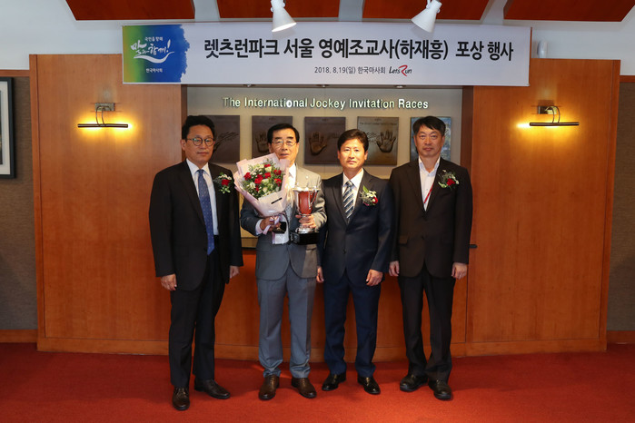 | ▲ 영예조교사 포상 18년도 하재흥 조교사 시상장면 |