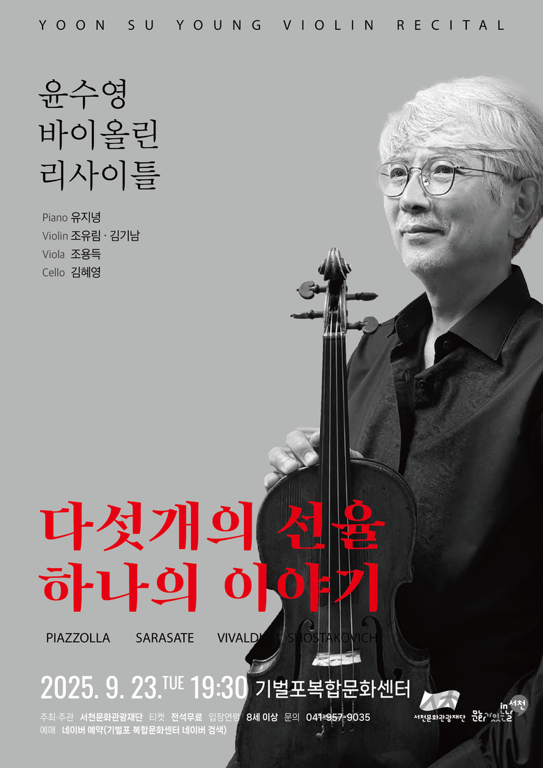 이번 무대는 세계적인 명성을 지닌 바이올리니스트 「윤수영 리사이틀」로 꾸며져 군민들에게 특별한 클래식 향연을 선사할 예정이다.