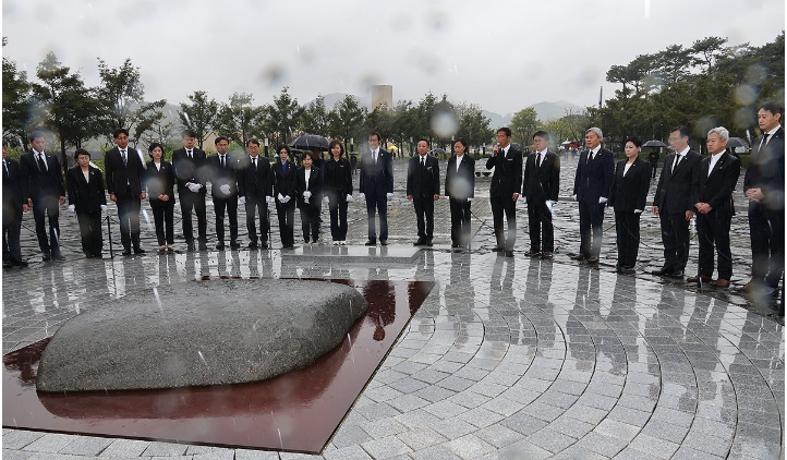 [세계타임즈 = 이채봉 기자] 4·10 총선에서 창당 38일 만에 원내 3당으로 급부상한 조국혁신당 당선인들이 문재인 전 대통령의 사저가 있는 경남 양산 평산마을과 고(故) 노무현 전 대통령 묘역이 있는 김해 봉하마을을 잇달아 찾았다.임기가 얼마 남지 않은 21대 국회와 5월 말 출범하는 22대 국회에서의 당 전략을 논의하기 위한 1박2일 워크숍을 진보 진영의 상징으로 여겨지는 이들 장소에서 진행한 것이다.이들은 우선 낮 평산마을을 찾아 문 전 대통령을 예방했다. 조 대표는 문 전 대통령의 재임 시절에 청와대 민정수석과 법무부 장관을 지낸 문재인 정부의 핵심 인사였다.비가 내리는 가운데 문 전 대통령은 정장 차림에 우산을 쓰고 사저 밖으로 나와 조국 대표를 비롯한 당선인들을 반갑게 맞았다.문 전 대통령은 밝은 표정으로 조 대표 등과 환하게 웃으며 악수하고 대화를 나눴다.문 전 대통령과 조 대표는 사저 안으로 들어가면서 길가에 있는 지지자들에게 함께 손을 흔들어 인사했다.문 전 대통령은 조 대표와 당선인들에게 모두 고생하셨다. 선거에서 의미 있는 성과를 거뒀다. 축하드린다고 말했다고 조국혁신당이 보도자료를 통해 전했다.문 전 대통령은 조국혁신당이 창당할 때만 해도 많은 국민들이 안쓰럽게 생각하기도 했다며 그러나 그 안쓰러움에 멈추지 않고 당당한 정당으로 우뚝 섰다고 평가했다.조국혁신당만의 성공에 그친 게 아니다. 정권 심판의 바람을 일으켰고 범야권 승리에 큰 기여를 했다며 자부심을 가져도 좋다고 격려했다.문 전 대통령은 이제부터가 중요하다며 조국혁신당이 집단지성으로 새로운 정당의 리더십과 문화를 보여줬듯이 한국 정치를 바꾸고 발전시킬 것으로 기대한다고 말했다.조 대표는 두 달 전에 창당 결심을 말씀드리러 왔을 때도 덕담을 해주셨는데, 아쉬운 점도 있지만 소기의 성과가 있었다며 한 달 정도 된 신생 정당에 국민들께서 마음을 모아주신 결과라고 말했다.조 대표는 또 지금부터가 중요하다고 생각한다. 국민들의 기대가 우리가 가진 역량보다 훨씬 더 크다며 그래서 어깨가 무겁다. 많은 조언을 해주시면 고맙겠다고 덧붙였다.조 대표와 당선인들은 봉하마을로 옮겨 노 전 대통령 묘역에 참배하고 권양숙 여사를 예방했다.이들은 밤 봉하마을 내 노무현재단이 운영하는 봉하연수원에서 묵으며 당 전략을 집중적으로 논의한다.경기도 안산에서 열리는 4·16 세월호 참사 10주기 추도식에 참석하는 것으로 워크숍 일정을 마무리할 예정이다.조 대표는 페이스북에서 차기 서울중앙지검장 자리를 놓고 대통령실과 검찰 내부에서 긴장이 발생하고 있다며 윤석열 대통령에 대한 충성도와 김건희씨 관련 혐의 처리 입장이 인선의 핵심 기준이라고 주장했다.조 대표는 윤 대통령은 곧 데드 덕이 될 운명인 자신과 배우자를 위해 뻔뻔한 방패 역할을 하고 정적에 대해서는 더 무자비한 칼을 휘두를 사람을 찾고 있다며 국정 운영 능력이 0에 가까운 윤 대통령의 관심은 이제 온통 자신과 배우자의 신변 안전뿐이라고 지적했다.