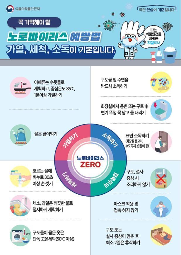 * 노로바이러스 : 오염된 물이나 음식물 등을 섭취 할 경우 식중독을 일으키는 장관계 바이러스로 영하 20℃에서도 생존가능해 겨울철에 자주 발생