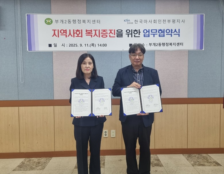 박미숙 부개2동장은 “지역사회 복지 증진을 위해 노력해주시는 한국마사회 인천부평지사에 감사하다”며 “이번 업무 협약으로 지역 내 취약계층의 복지 향상에 큰 도움이 될 것”이라고 말했다.