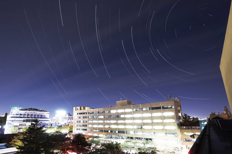 [충북 세계타임즈=이현진 기자] 2022년 12대 의회 개원, 신청사 기공식 등 많은 변화를 가졌던 충북도의회 청사 하늘에 지나간 시간을 반영 하듯 별들이 흐르고 있다./충북도의회 제공