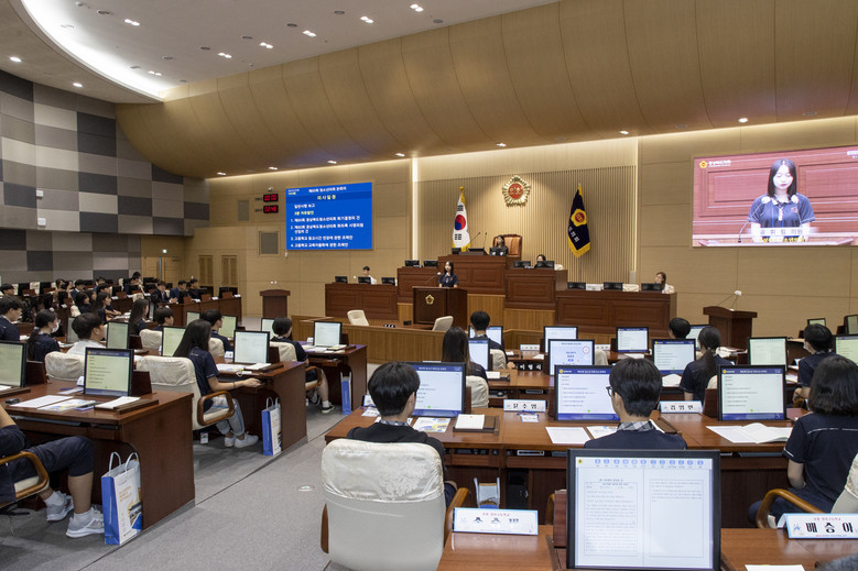 [경북 세계타임즈=한성국 기자] 경상북도의회(의장 배한철)는 포항 영일고등학교 학생을 대상으로 제60회 경상북도청소년의회 교실을 경상북도의회 본회의장에서 7월 7일 개최했다.