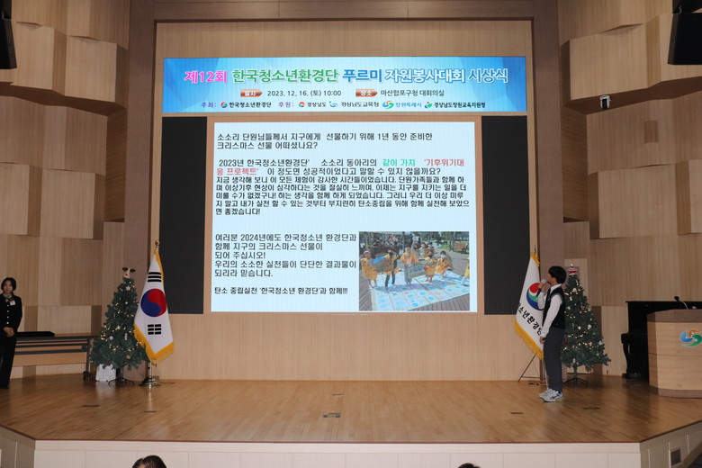 [세계타임즈]최성룡기자 = 한국청소년환경단(총재 남성용)은 12월 16일(토) 마산합포구청 대회의실에서 ‘제12회 한국청소년환경단 푸르미 자원봉사대회 시상식’을 개최했다.