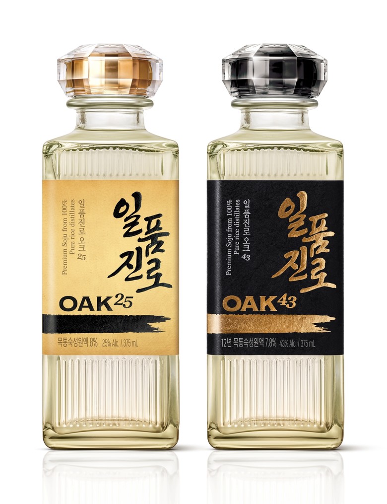 ‘일품진로 오크25’와 ‘일품진로 오크43’은 국내 최대 규모의 목통 숙성고에서 오랜 기간 숙성된 원액을 블렌딩한 고품질 증류식 소주 브랜드다. 하이트진로는 이번 패키지 리뉴얼을 통해 라벨, 병뚜껑의 디자인과 색상을 변경했다.