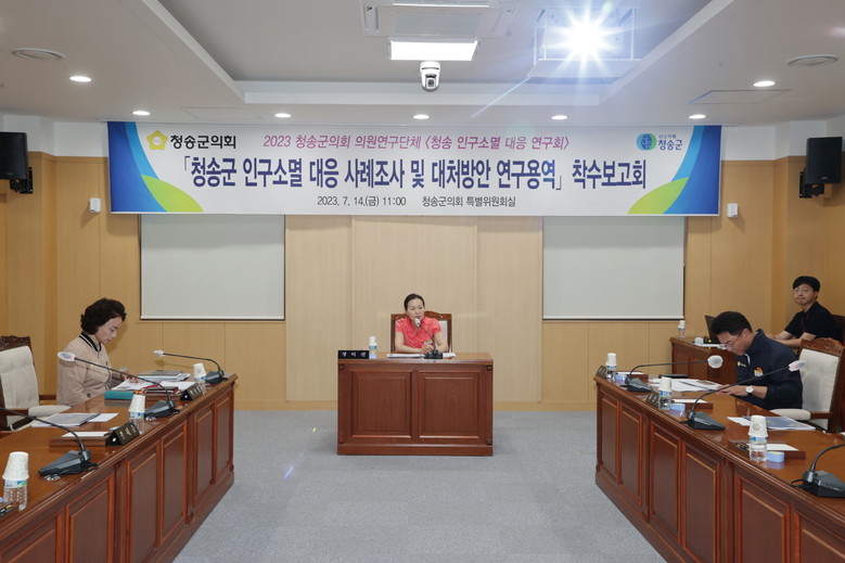 [청송군 세계타임즈=한성국 기자] 청송군의회(의장 권태준) 의원연구단체 '인구소멸대응연구회'는 7월14일 의회 특별위원회실에서 ‘청송군 인구소멸 대응 사례조사 및 대처방안 연구’를 주제로 착수보고회를 가졌다.