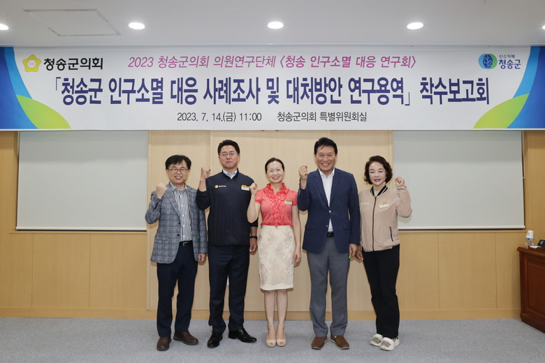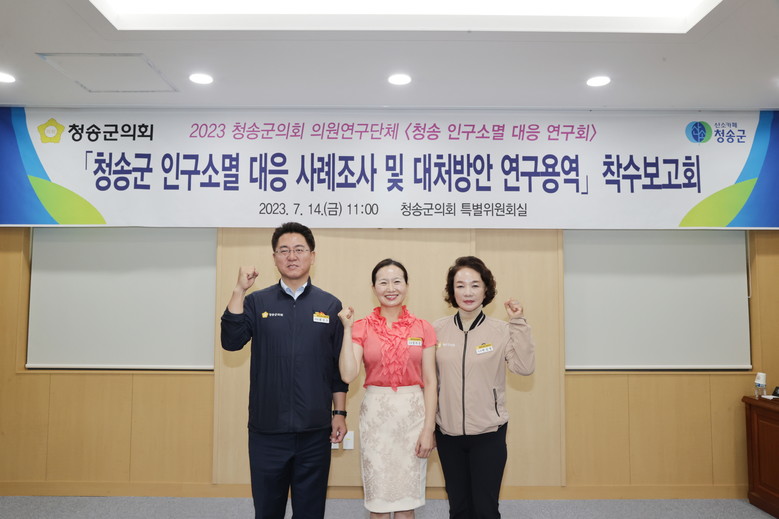 대표 의원인 정미진 의원은 “이번 연구를 통하여 청송군의 실정에 맞는 지방소멸 대처 방안을 도출되는 좋은 기회가 되기를 기대하며 집행부 관련 부서와 함께 현실적이고 미래지형적인 정책이 될 수 있도록 좀 더 꼼꼼히 공부하고 토의하는 의회가 될 수 있도록 노력하겠다.”는 다짐을 밝혔다.